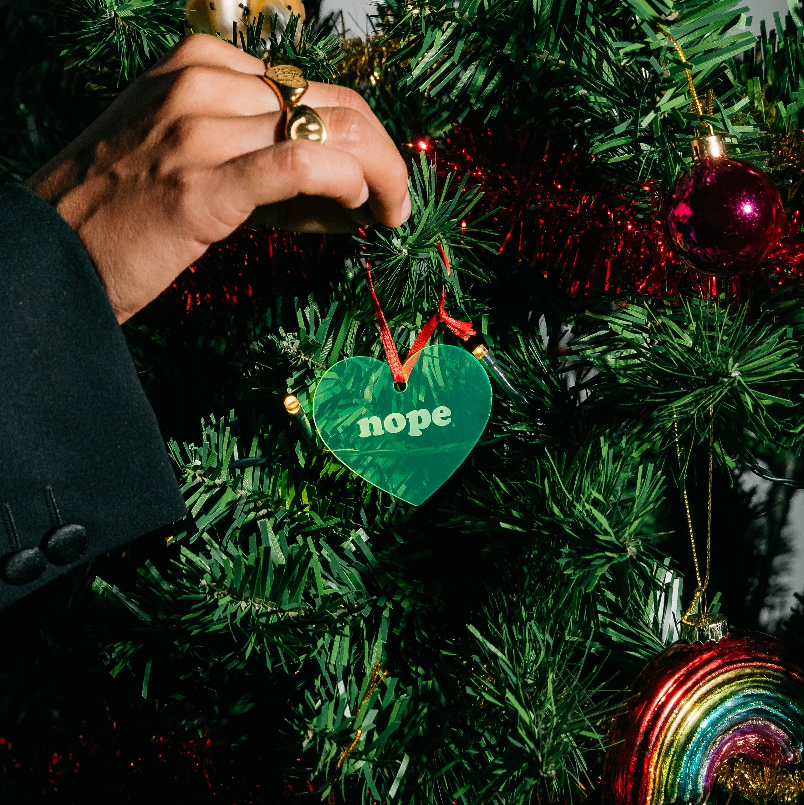 "Nope" Plexi Heart XMAS ball